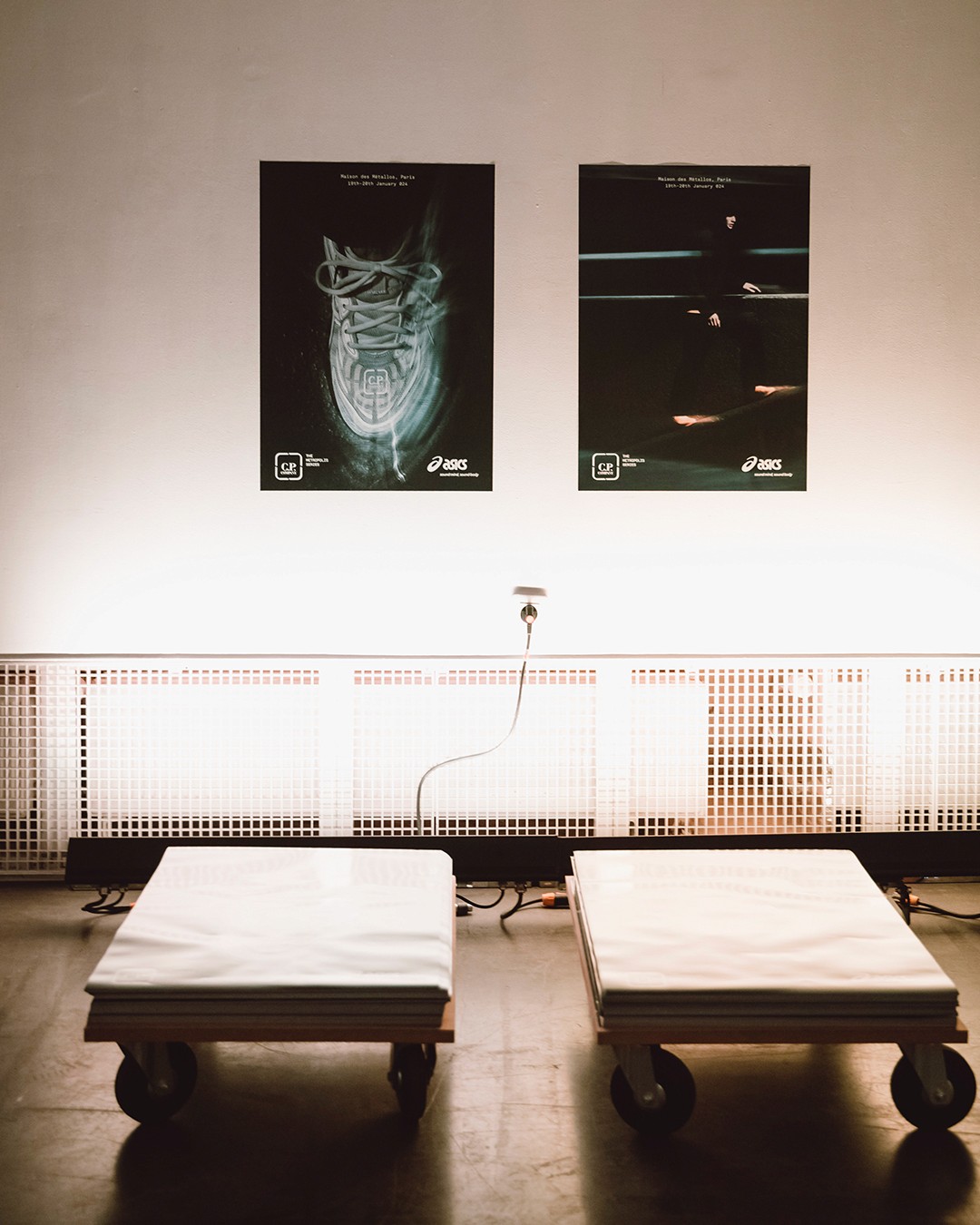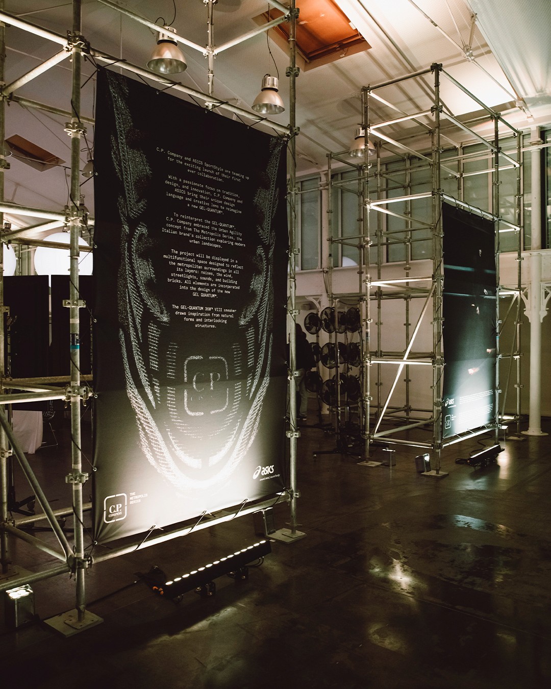 Graphic design and exhibition display for the C.P. Company x Asics GEL-QUANTUM 360 VIII launch. First collaboration between the Italian outerwear brand and the Japanese sportswear giant — debuted through an exclusive pop-up at Maison des Metallos during Paris Fashion Week. Print and digital communication. January 2024.